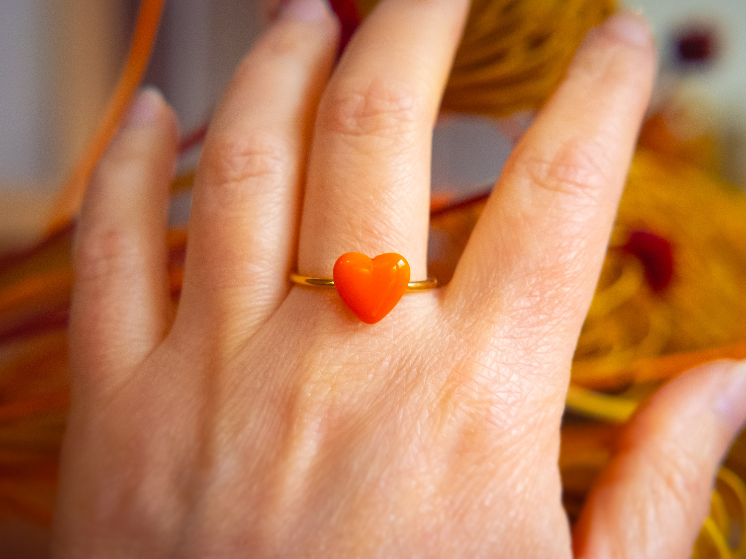 Voici la bague fine Barbara orange néon dorée ! Elle est réglable et en acier inoxydable.