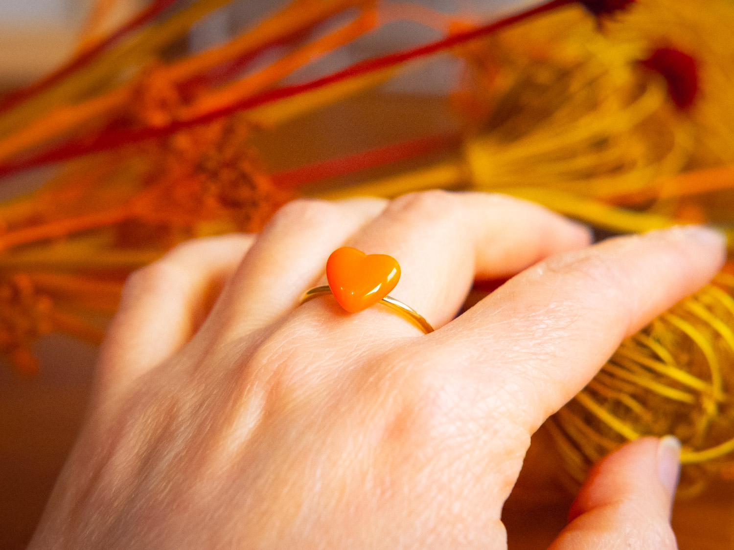 Bague fine réglable Barbara orange néon , bague réglable ornée d’un bouton vintage des années 1940 fait main en verre dans le style art déco par Assuna.