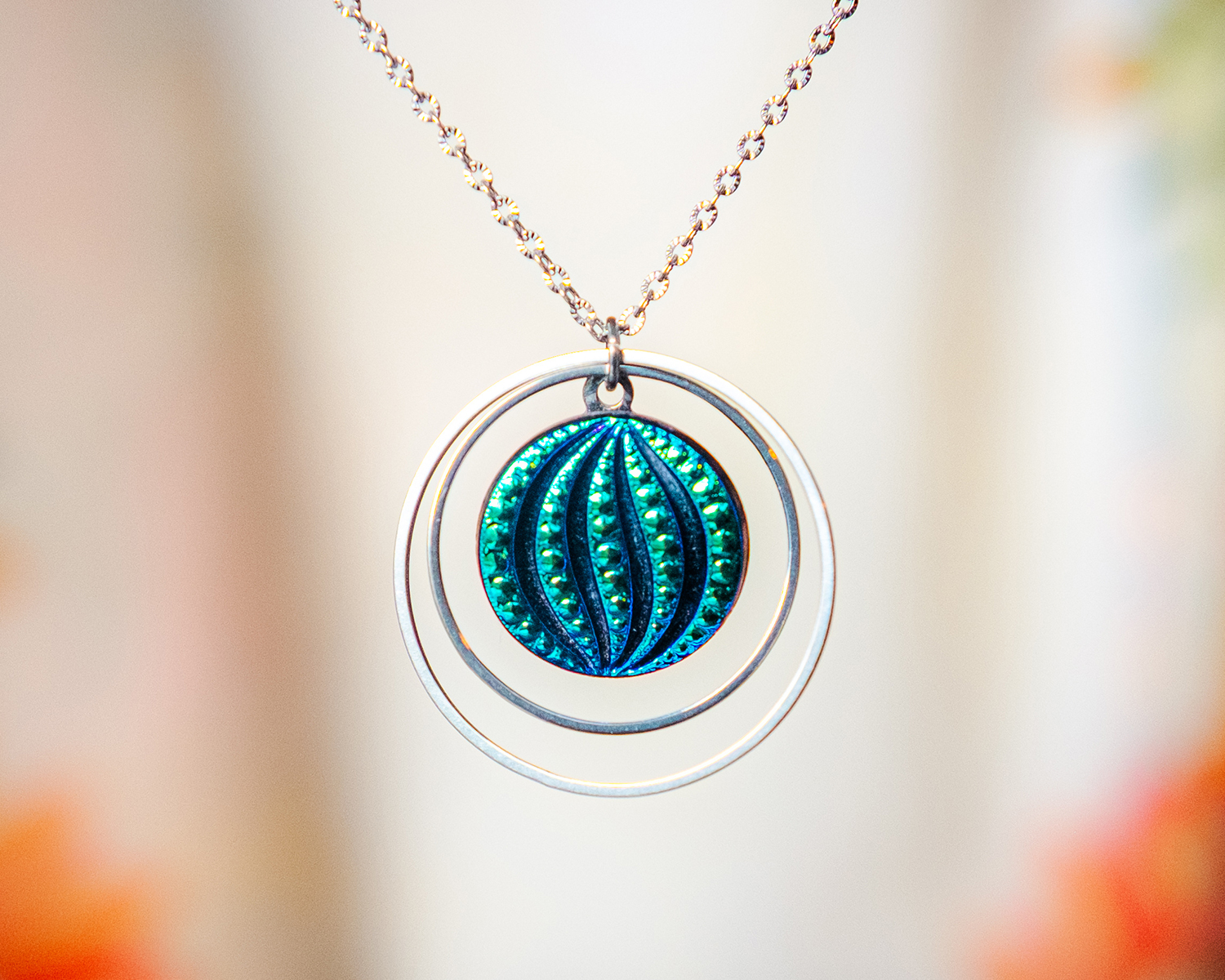 Offrez un bijou de créateur qui raconte une histoire et qui se démarque par son caractère exceptionnel. Grâce à sa chaîne et ses anneaux en acier inoxydable il est résistant et durable et conserve son éclat au fil du temps.