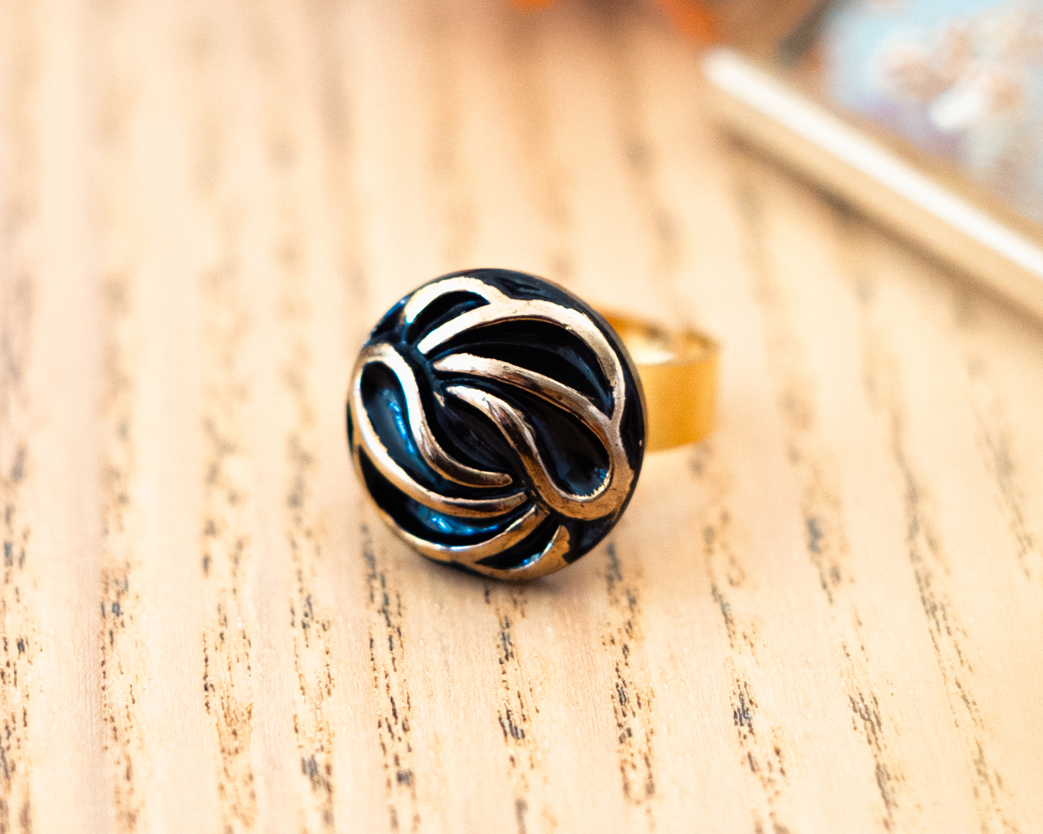 Cette pièce réalisée avec un bouton ancien de haute couture en verre évoque le raffinement des années 1920. Le délicat bouton ancien orné d’un motif floral art déco noir et doré apporte une touche d’originalité à votre collection de bijoux. Que ce soit pour une occasion spéciale ou pour sublimer votre quotidien, cette bague est le cadeau unique parfait pour qui apprécie l’authenticité et le style vintage.