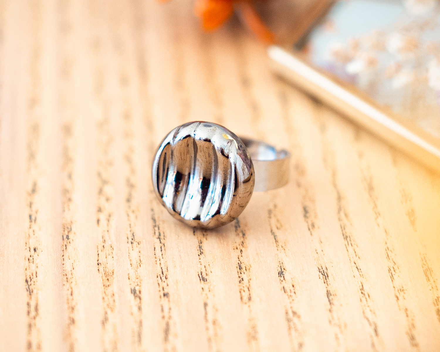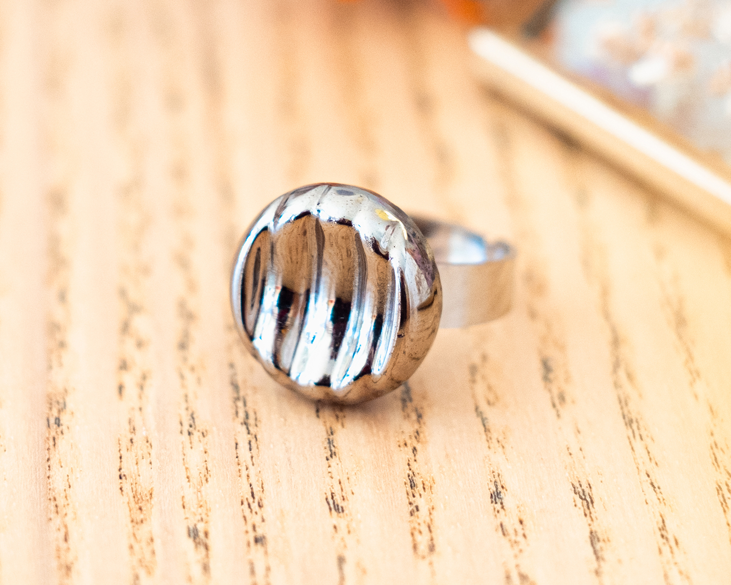 Diamètre du bouton 1,8 cm. Anneau ouvert réglable en acier inoxydable (pas d’allergie !).